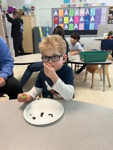 November 10, 2025: Students participated in a "cooking" activity for letter A. We made ants on a log!